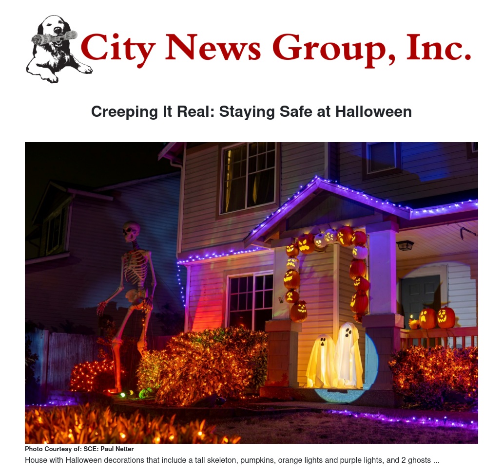 When it comes to decorative lights, spooky season is second only to Christmas and candles. That’s why Southern California Edison joins fire and public safety departments in urging customers to be cautious when celebrating and prevent electrical or fire accidents, injuries and property damage.