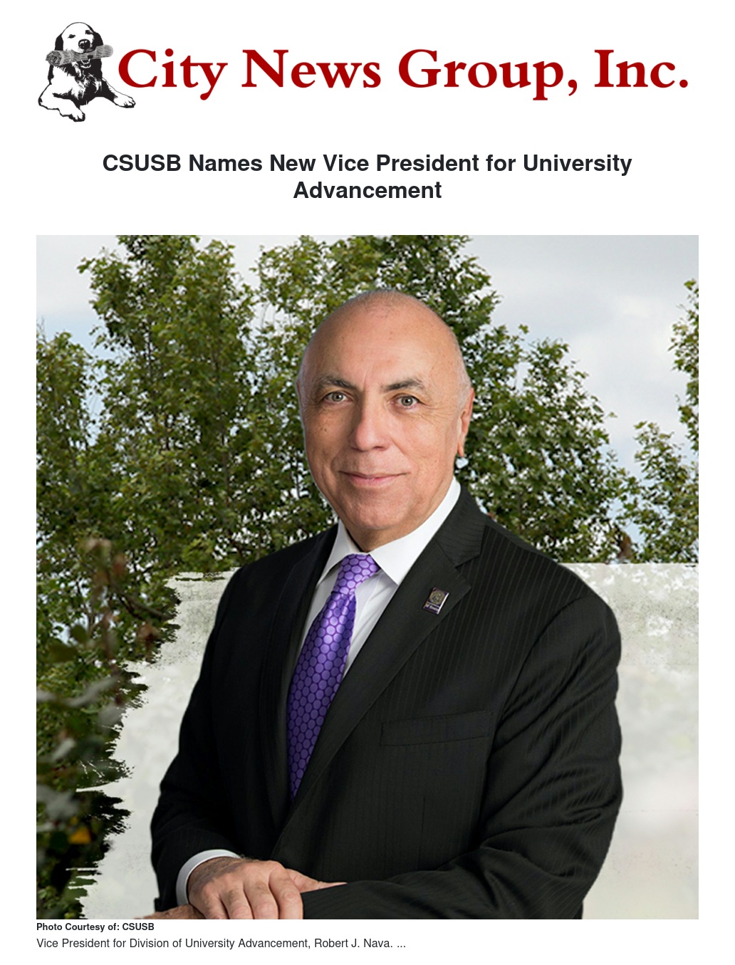 After a national search, Cal State San Bernardino has named Robert J. Nava as its new vice president for the Division of University Advancement. Nava has spent 33 years in higher education advancement leadership roles, including 18 years in the inland region.