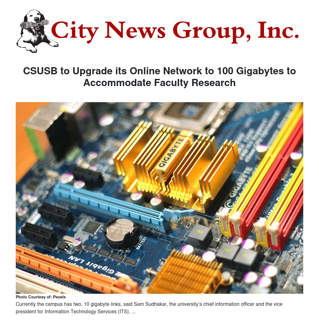 Cal State San Bernardino is one of eight California State University campuses that have been approved by the CSU Chancellor’s Office to upgrade their online networks to high-speed 100 gigabytes, but the only campus to be upgraded to accommodate faculty research.