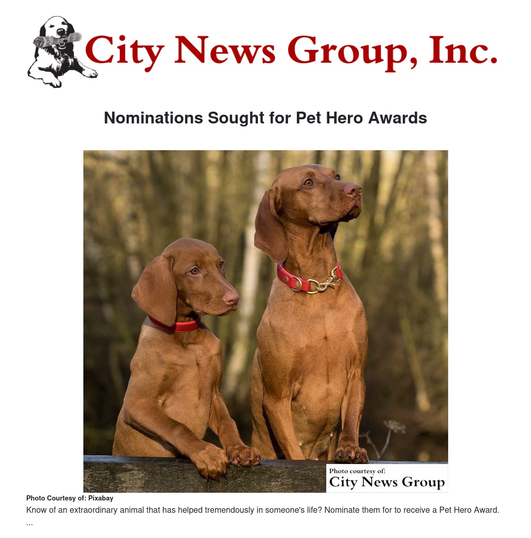 Nominations Sought for Pet Hero Awards