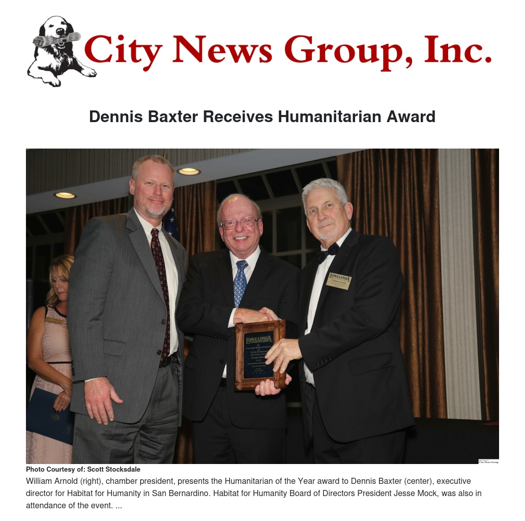 LOMA LINDA>> Serving the community as the executive director of Habitat for Serving the community as the executive director of Habitat for Humanity is one of the many accomplishments Dennis Baxter, a native of San Bernardino, has under his belt.