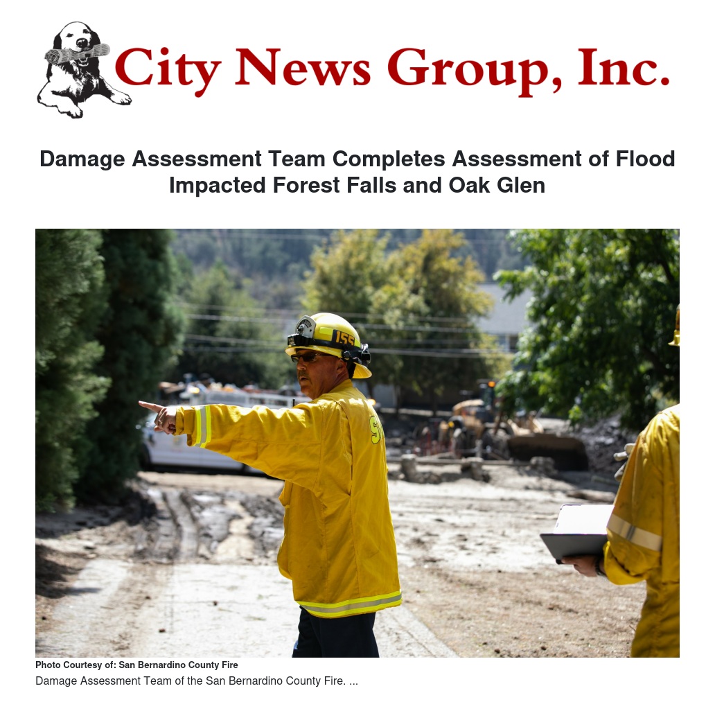 Damage Assessment Team Completes Assessment of Flood Impacted Forest Falls and Oak Glen