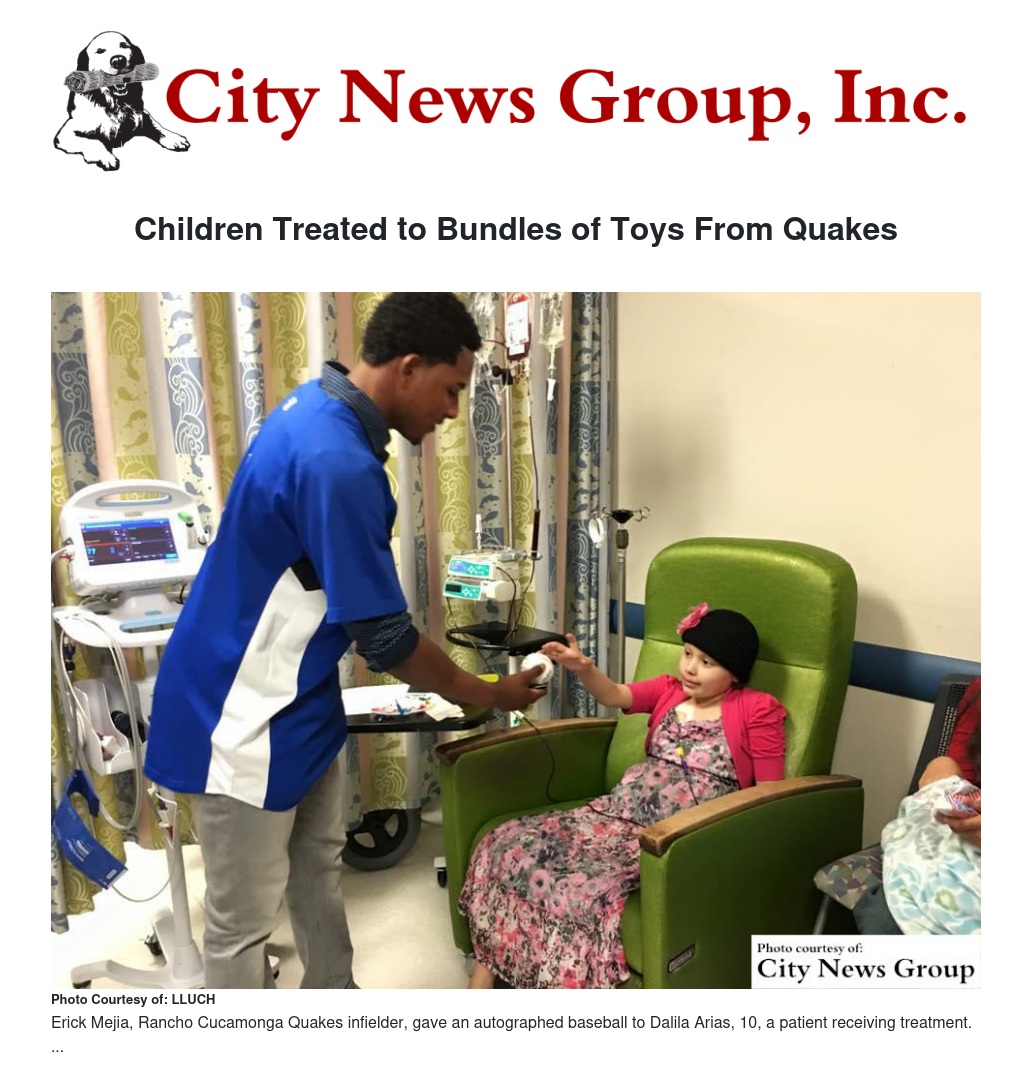 The Rancho Cucamonga Quakes, affiliates of the Los Angeles Dodgers, made the special delivery to patients receiving treatment at the clinic, which was nearly at capacity that day.