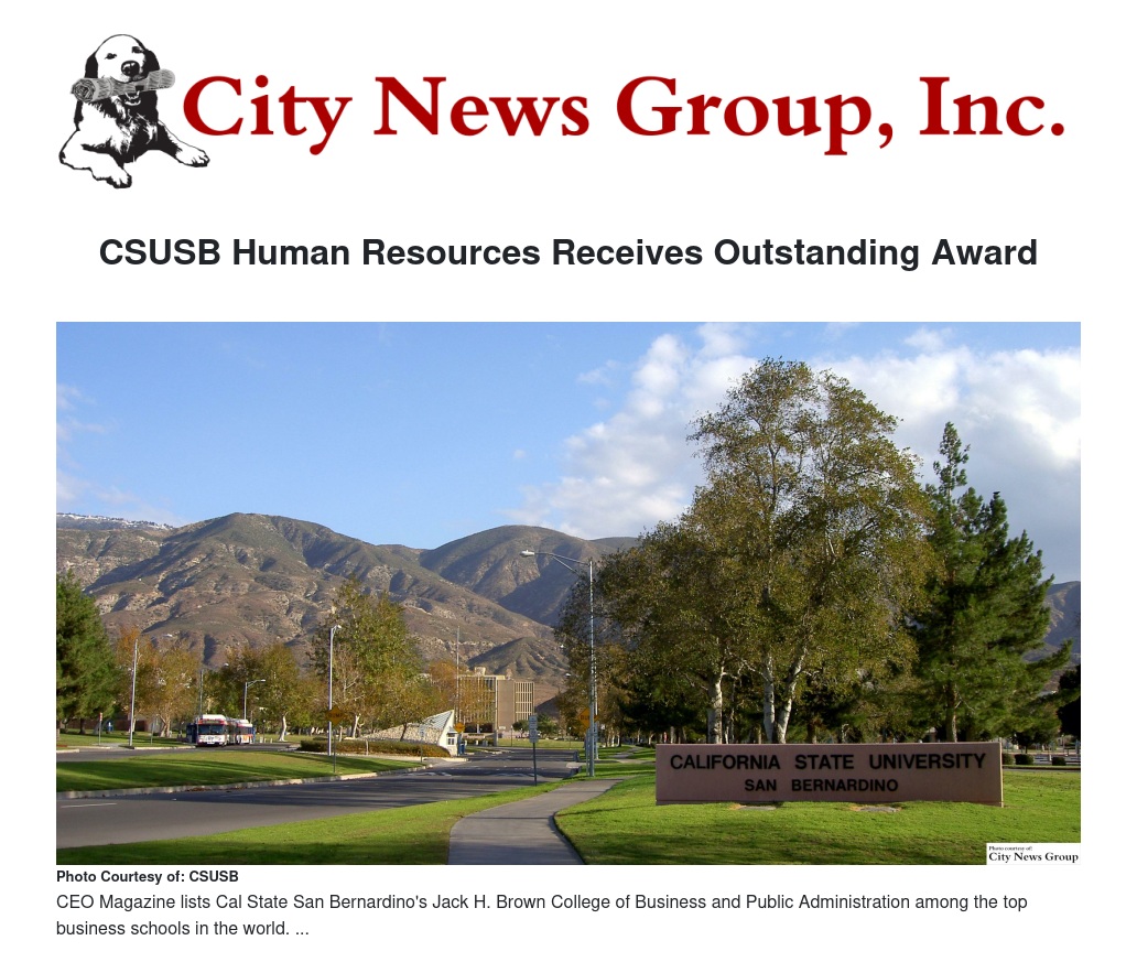 SAN BERNARDINO >> California State University, San Bernardino’s human resources department was awarded the 2016 Human Resources Outstanding Team Award for its work in launching Onboarding at CSUSB, the university’s new employee benefits orientation program.