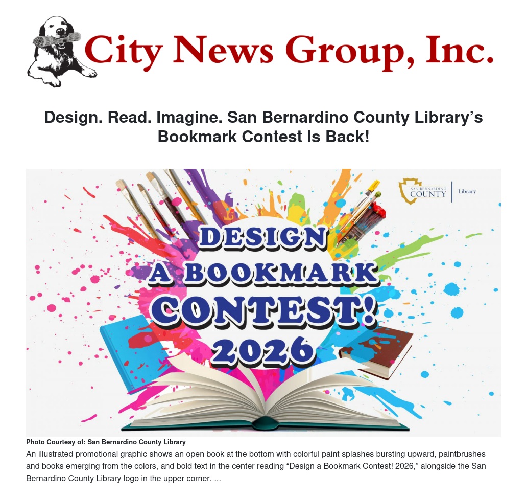 Design. Read. Imagine. San Bernardino County Library’s Bookmark Contest Is Back! by Charmaine Mislang - City News Group, Inc.