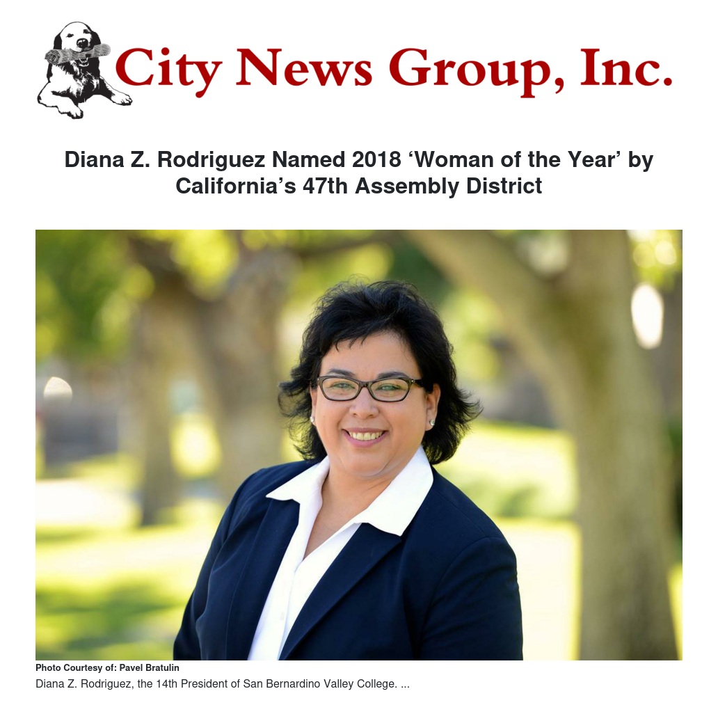Diana Z. Rodriguez, President of San Bernardino Valley College, was named 2018 Woman of the Year by California‘s 47th Assembly District today at a special ceremony in the State Capitol.