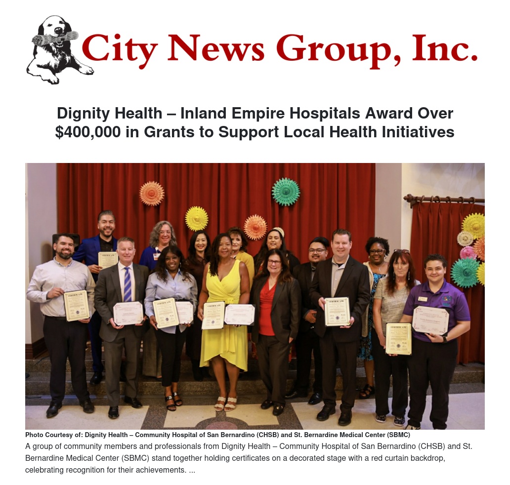Dignity Health – Inland Empire Hospitals Award Over $400,000 in Grants to Support Local Health Initiatives by William Cortez - City News Group, Inc.