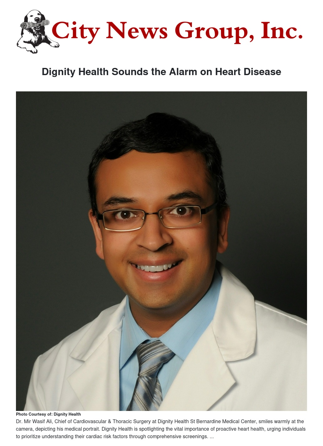 "Heart Month is more than just an awareness campaign; it's a critical call to action," shares Dr Mir Wasif Ali Chief of Cardiovascular & Thoracic Surgery, at Dignity Health St Bernardine Medical Center, "Many people don't realize they are at risk for heart disease until they experience a serious event. That's why getting screened, understanding your numbers, and having an open dialogue with your doctor are paramount. Early detection can literally be a lifesaver."