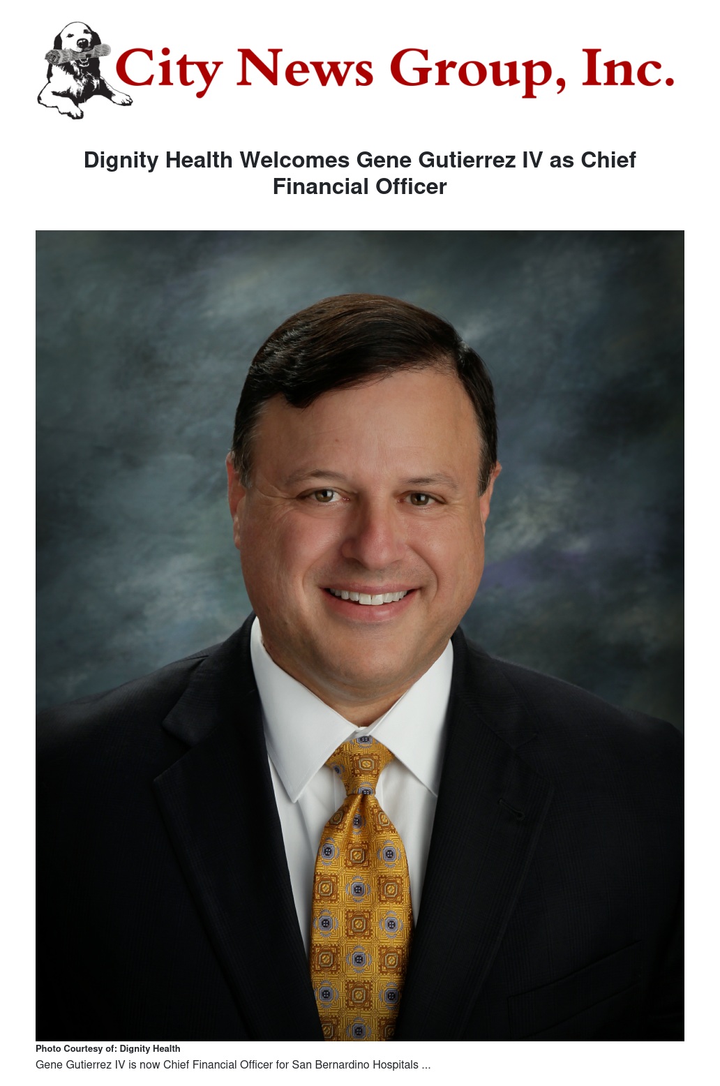 Dignity Health is pleased to announce the appointment of Gene Gutierrez IV, CPA as the new Chief Financial Officer (CFO) for Community Hospital of San Bernardino (CHSB) and St. Bernardine Medical Center (SBMC), effective Monday, June 23.