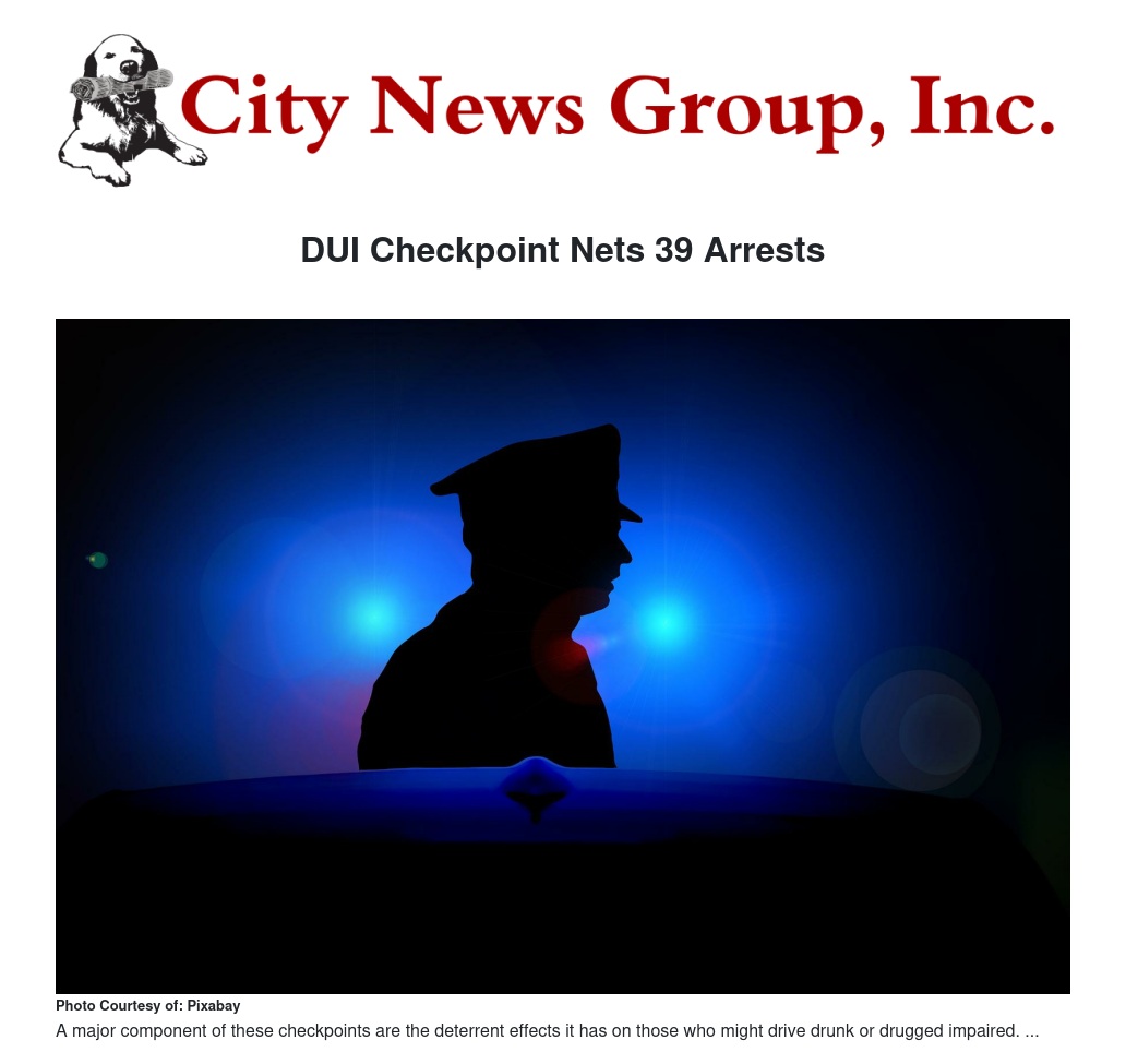 DUI/Drivers License checkpoints have been shown to lower DUI deaths and injuries. A major component of these checkpoints are the deterrent effects it has on those who might drive drunk or drug impaired, bringing about more awareness and encouraging everyone to use sober designated drivers.