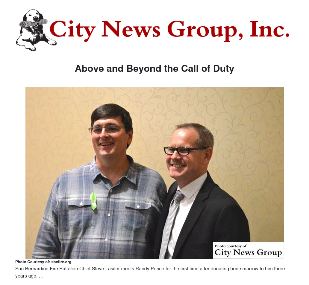 Three years ago, San Bernardino County Fire Battalion Chief Steve Lasiter made the decision to donate bone marrow.
