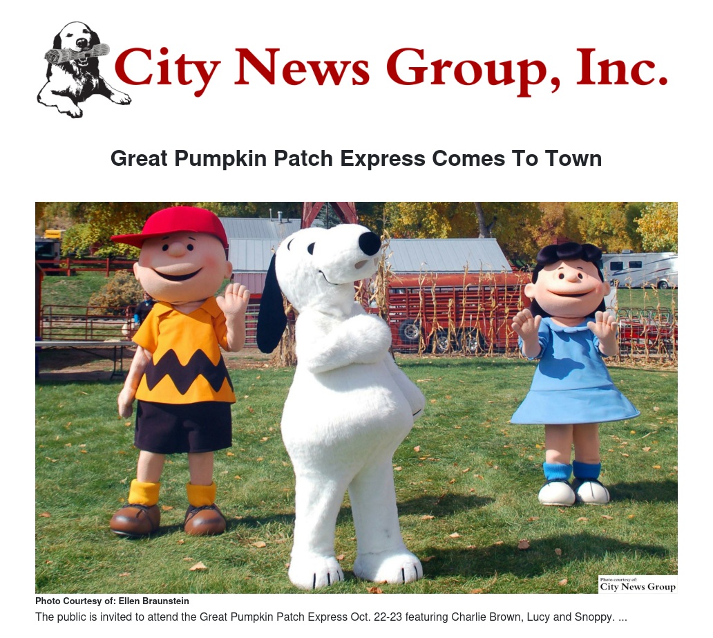 MORENO VALLEY>> PEANUTS™ The Great Pumpkin Patch Express is coming to Orange Empire Railway Museum in Perris, California Oct. 22-23.