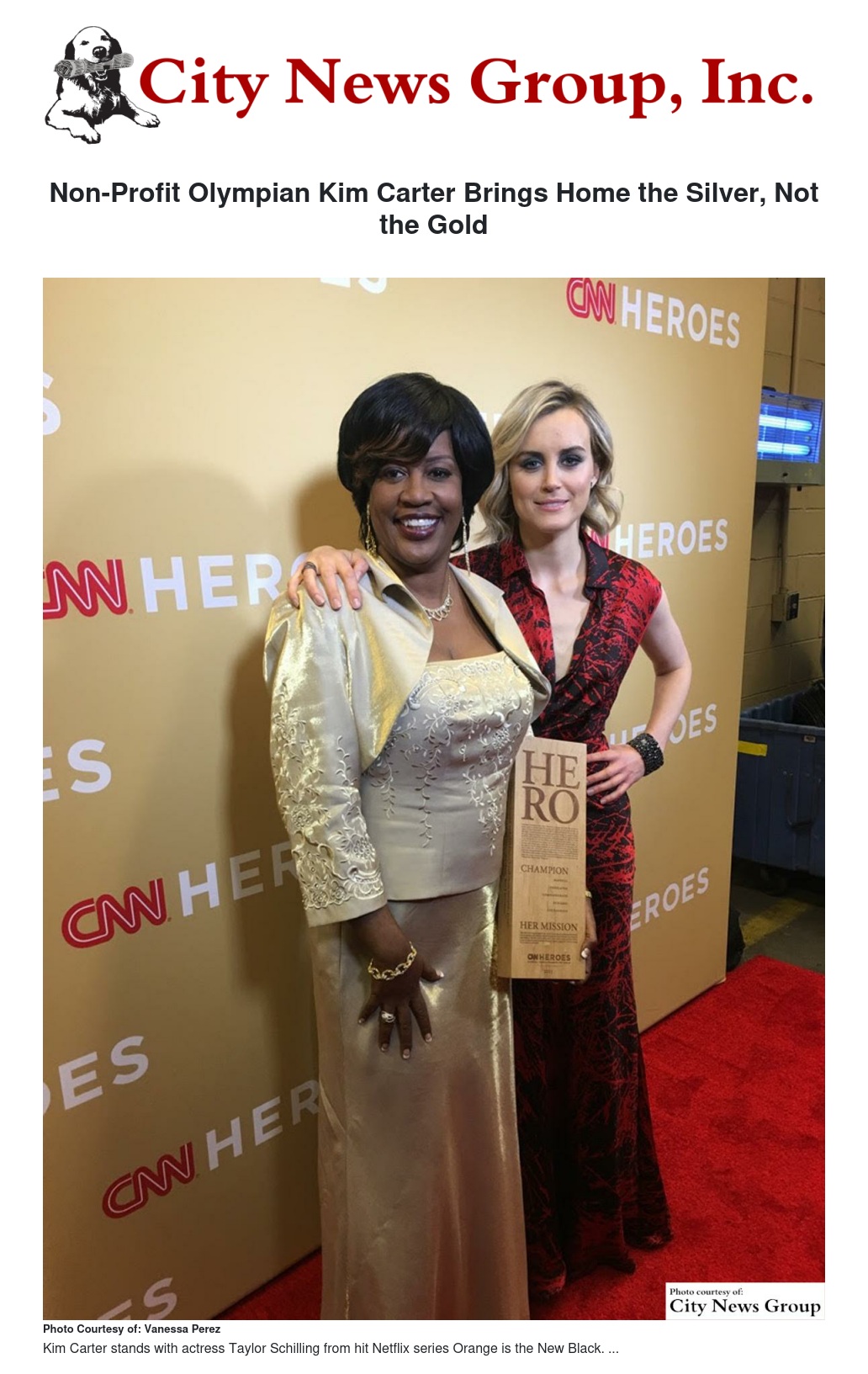 The highlight of the evening came when Actress Taylor Schilling from the show Orange is the New Black, presented Kim Carter with the Top 10 Hero Award. Kim reminded everyone that her motivation to help women reclaim their children is directly attributed to the pain that she carries from being absent in her daughter Missy's early years of life.