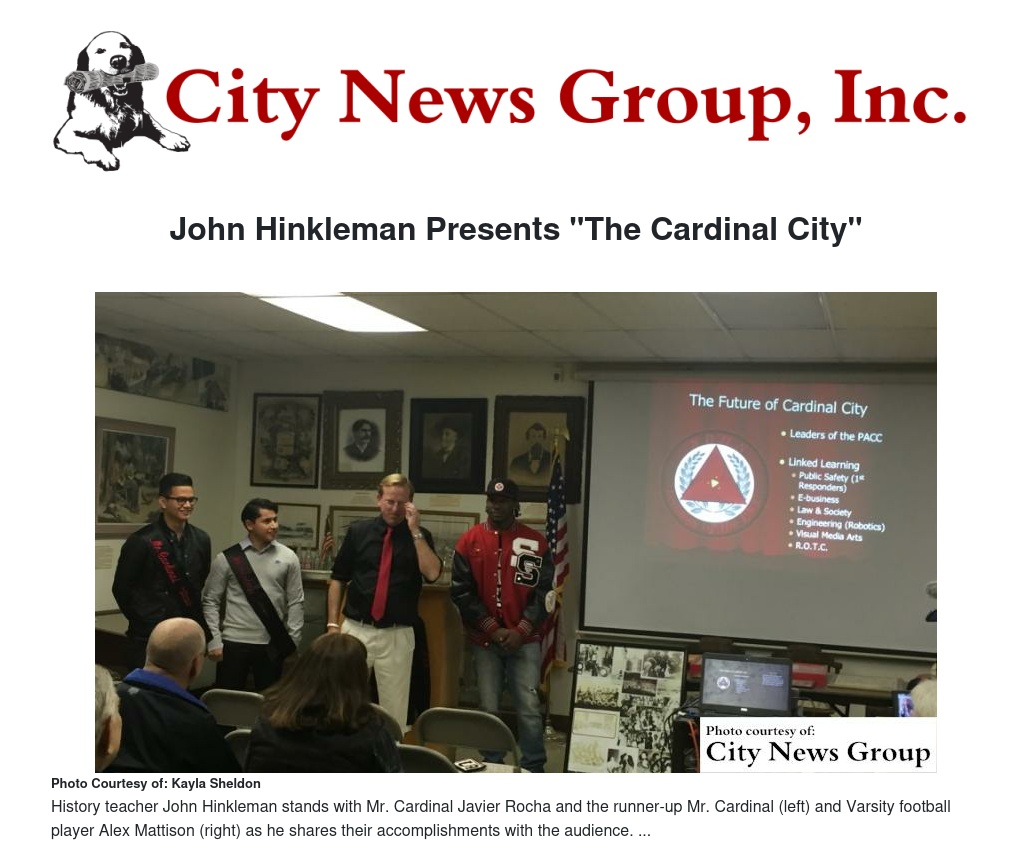This past Thursday, Dec. 3, History teacher at SBHS John Hinkleman presented “The Cardinal City: Past, Present, & Future” to a myriad of community members, current Cardinals and even a large number of SBHS Alumni.