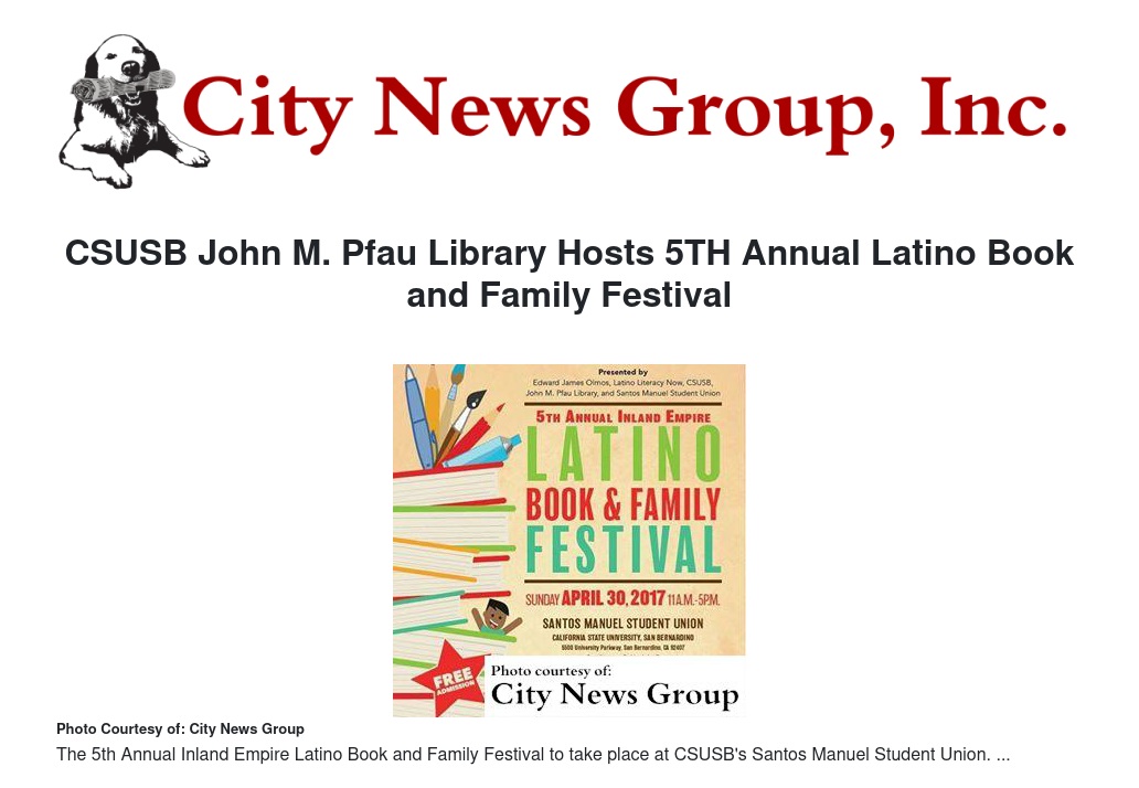 CSUSB John M. Pfau Library Hosts 5TH Annual Latino Book and Family Festival by Joe Gutierrez - City News Group, Inc.
