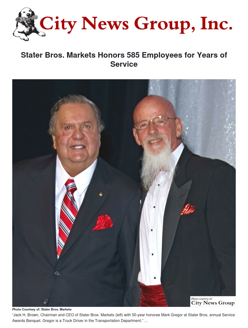 “I am proud that so many employees have chosen to make Stater Bros. their career. It has been said that you judge a person by the company they keep … and a Company by the people they keep,” stated Brown. “Stater Bros. Markets was recently rated the ‘Best and Freshest’ Full Service Supermarket Chain in Southern California by a leading national consumer magazine, and this was because of the hard work and dedication of our loyal family members.” Brown further stated.