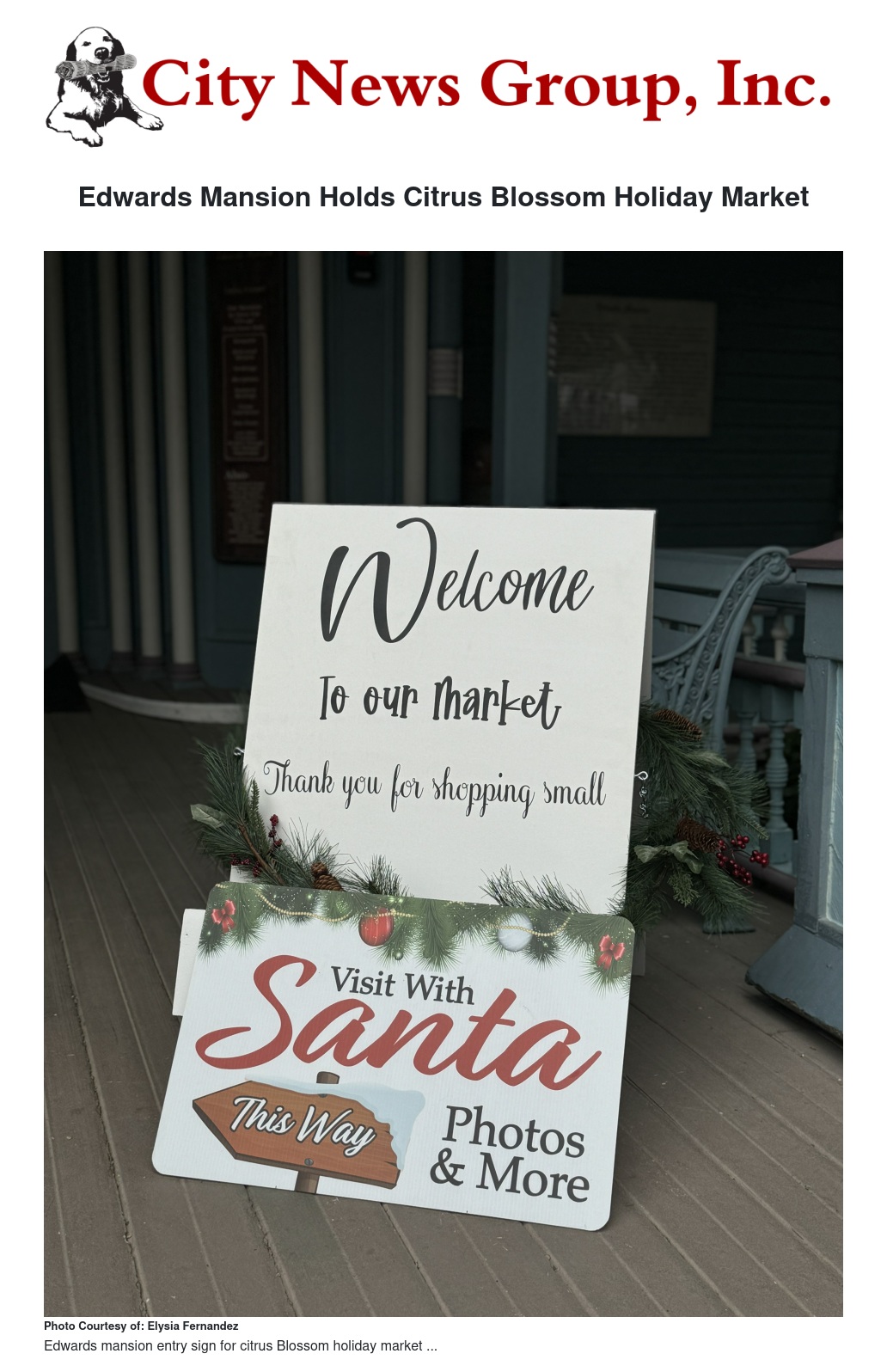 The historic Edwards Mansion, with its charming architecture and rich heritage, served as the perfect backdrop for the annual Citrus Blossom Holiday Market, an event that turned into a community favorite. During the festive season, the mansion's grand halls and beautifully landscaped gardens were transformed into a bustling marketplace filled with local artisans, delicious food vendors, and vibrant citrus displays, celebrating the region’s legacy as a citrus hub. The enticing aroma of freshly baked goods mingled with the sweet fragrance of blooming citrus blossoms, creating an enchanting atmosphere that drew crowds from near and far. Attendees reveled in the unique shopping experience while enjoying Santa , vendors and engaging activities for all ages. The market not only showcased the talents of local craftsmen but also fostered a strong sense of community spirit, making it an absolute hit that everyone looks forward to each year.