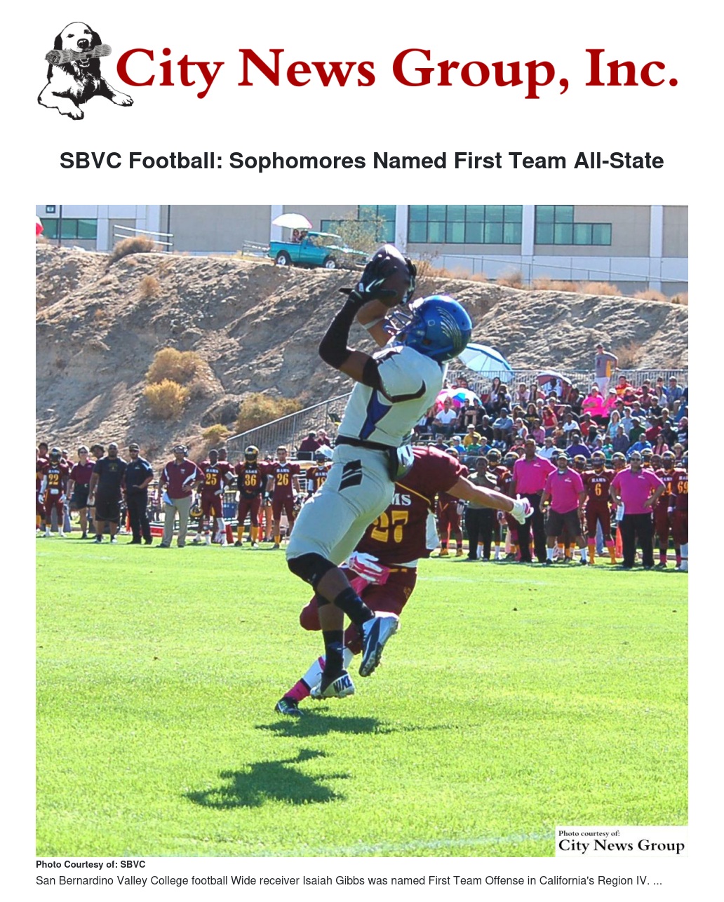 SBVC Football: Sophomores Named First Team All-State