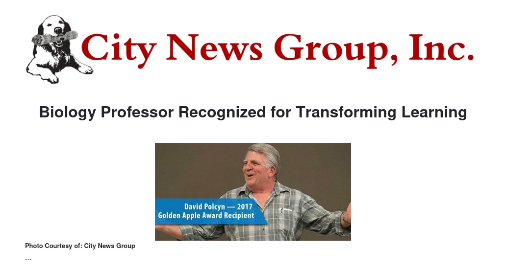 SAN BERNARDINO>> David Polcyn, a professor of biology who has taught at Cal State San Bernardino since 1988, has been named the recipient of the 2016-17 Golden Apple award, the University’s highest award for teaching.