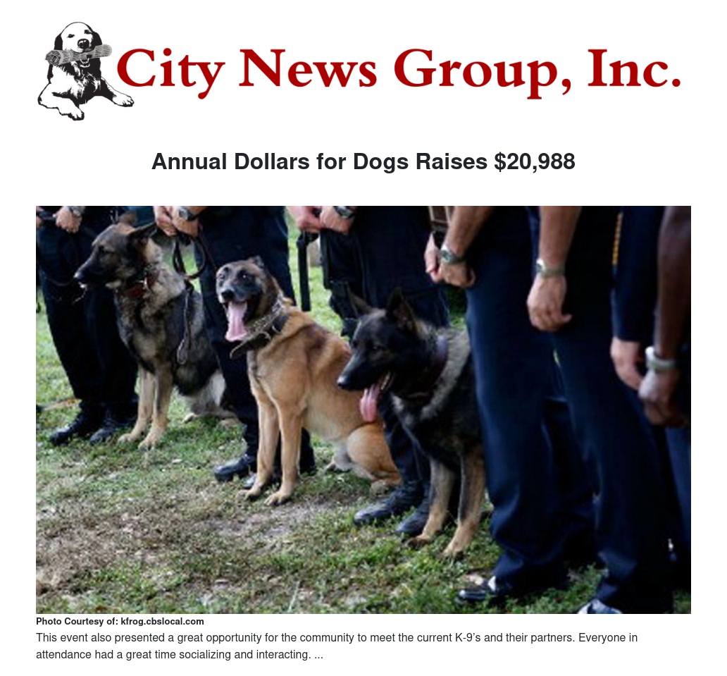 Sharon Blechinger, owner and operator of the Mexico Cafe’, recently hosted the 10th Annual Dollars for Dogs Event to support the San Bernardino Police K-9 Unit. With the overwhelming support of the community, this event raised $20,988.48 which will go to help fund future needs of the K-9 unit.There were K-9 demonstrations that allowed the public to see firsthand some of the unique capabilities of a K-9. This event also presented a great opportunity for the community to meet the current K-9’s and their partners. Everyone in attendance had a great time socializing and interacting during what has become an annual event.
