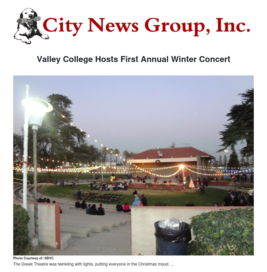 The Greek Theatre twinkled with lights on Dec. 12, during the first annual Winter Concert sponsored by the Associated Student Government (ASG) of San Bernardino Valley College (SBVC). Students and community members alike came out to enjoy the free entertainment and good food provided by the ASG.