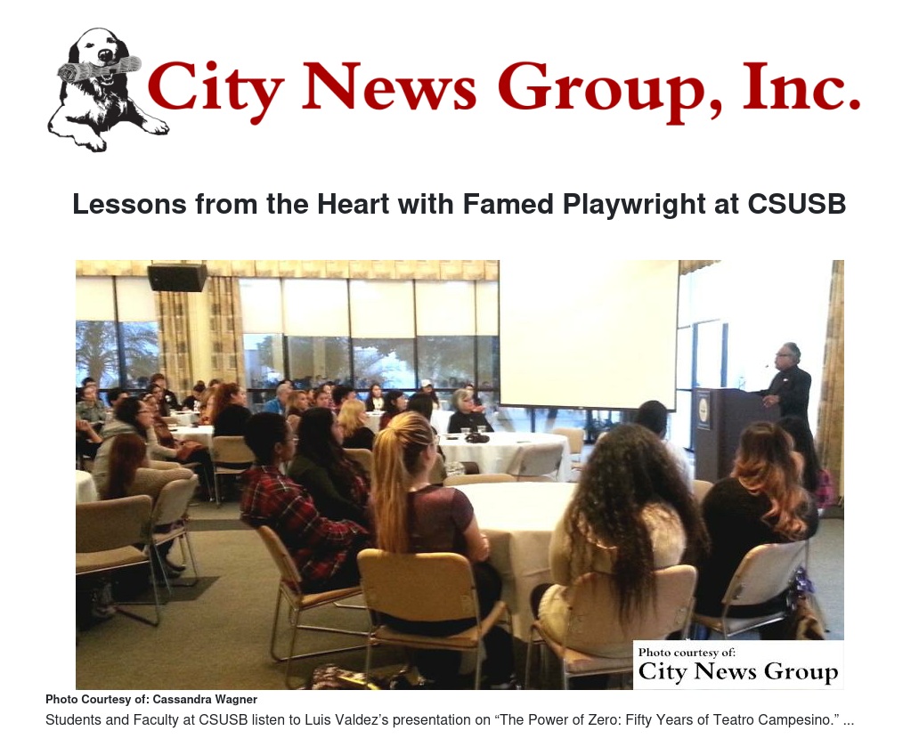 Famed American playwright, writer, producer, film director and instructor Luis Valdez shared his presentation, “The Power of Zero: Fifty Years of Teatro Campesino,” at Cal State San Bernardino on Thursday, Nov. 5.