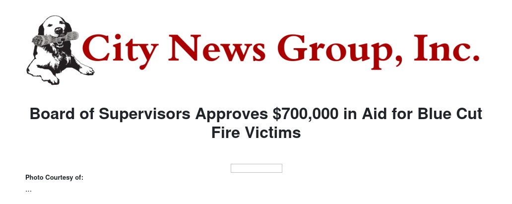 Board of Supervisors Approves $700,000 in Aid for Blue Cut Fire Victims
