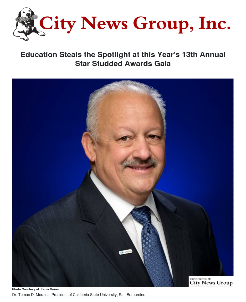 Additionally, the Community Education Champion Award goes to Dr. Tomas D. Morales, president of CSUSB for his life-long dedication to improving the access and quality of public higher education. Dr. Morales is one of the few higher education administrators in the United States who has held senior administrative positions at the three largest public university systems in the nation. He took the reins at CSUSB just as higher education in California was trying to emerge from the depths of the Great Recession. Under his leadership, Cal State San Bernardino has undergone a post-recession renaissance and is poised to create the educated workforce that is critical to improve the economic stimulus for this region. "It is our honor to recognize this passionate dedicated educator for his outstanding leadership," expressed Kim Carter.