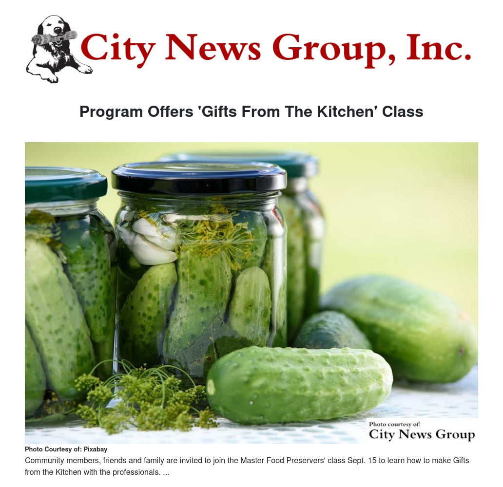 Community members, friends and family are invited to join the Master Food Preservers' class Sept. 15 to learn how to make Gifts from the Kitchen with the professionals.