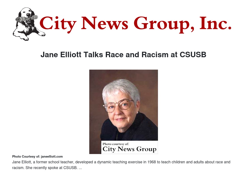 No stranger to Cal State San Bernardino, Elliott presented a diversity lecture on campus in 1998 as part of Conversations on Diversity lecture series, and as a guest speaker for a psychology class in 2014.