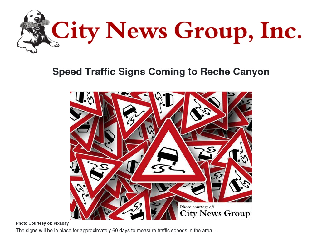 Several concerned residents of the Colton community contacted the office of Third District Supervisor James Ramos with concerns over the safety of Reche Canyon Road. They expressed concerns over the amount of cars that constantly speed on this road. Community residents feel that this is a growing problem, one that should be addressed promptly in order to keep Reche Canyon Road safe for both residents and drivers.
