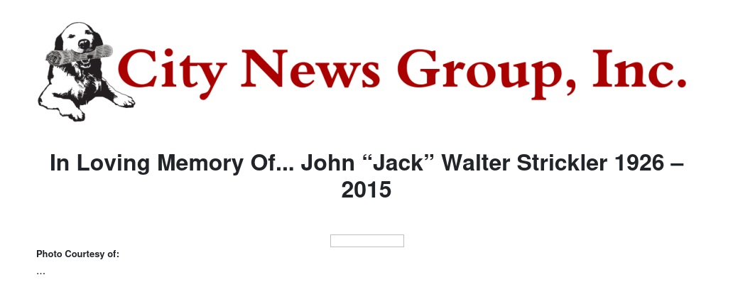 In Loving Memory Of... John “Jack” Walter Strickler 1926 – 2015