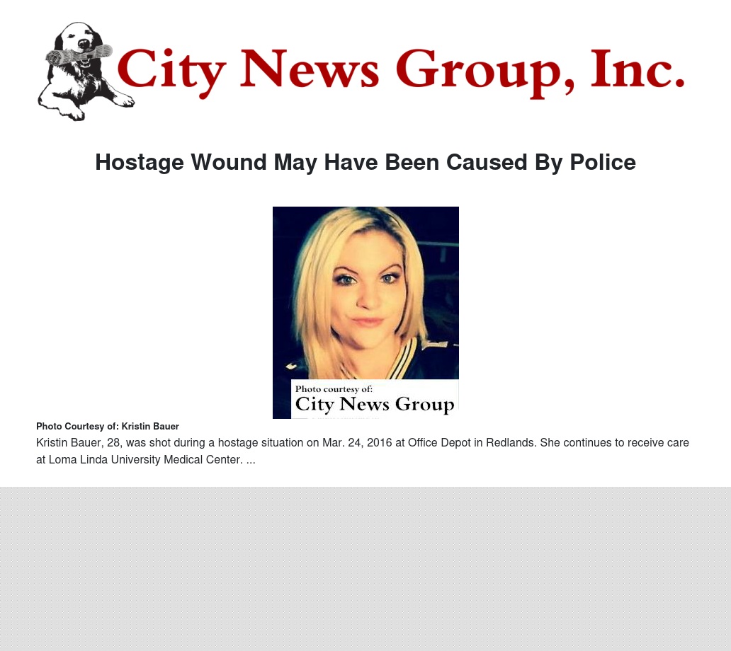 "As you are all aware, last Thursday afternoon, the Redlands Police Department along with officers from agencies including the San Bernardino Police Department, San Bernardino County Sheriff’s Department and others responded to a hostage incident at the Office Depot that ended in the death of the suspect and injury of his hostage and one other person.