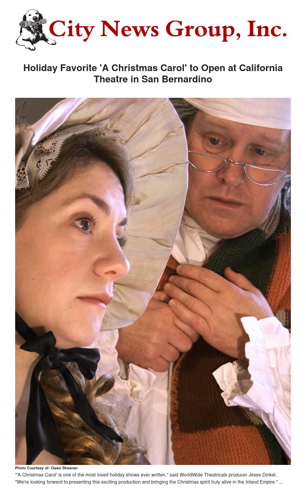 "'A Christmas Carol' is one of the most loved holiday shows ever written," said WorldWide Theatricals producer Jesse Dinkel. "We're looking forward to presenting this exciting production and bringing the Christmas spirit truly alive in the Inland Empire."
