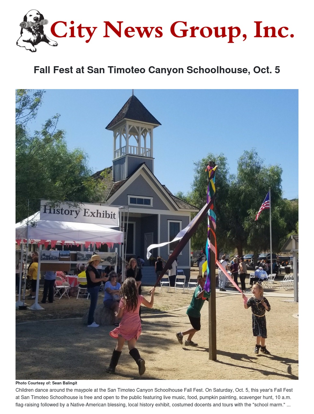 Fall Fest at San Timoteo Canyon Schoolhouse, Oct. 5 by Laurie McLaughlin - City News Group, Inc.