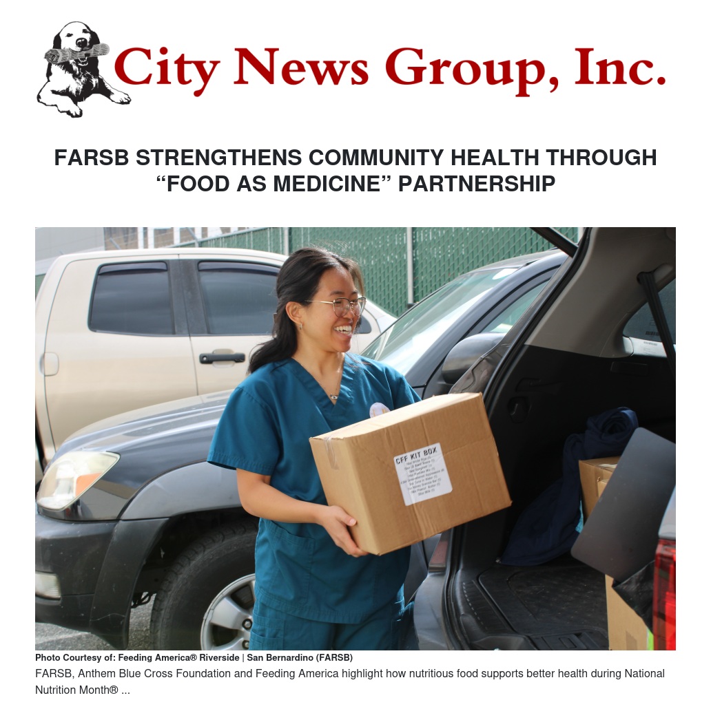 FARSB STRENGTHENS COMMUNITY HEALTH THROUGH “FOOD AS MEDICINE” PARTNERSHIP by Rachel Bonilla - City News Group, Inc.