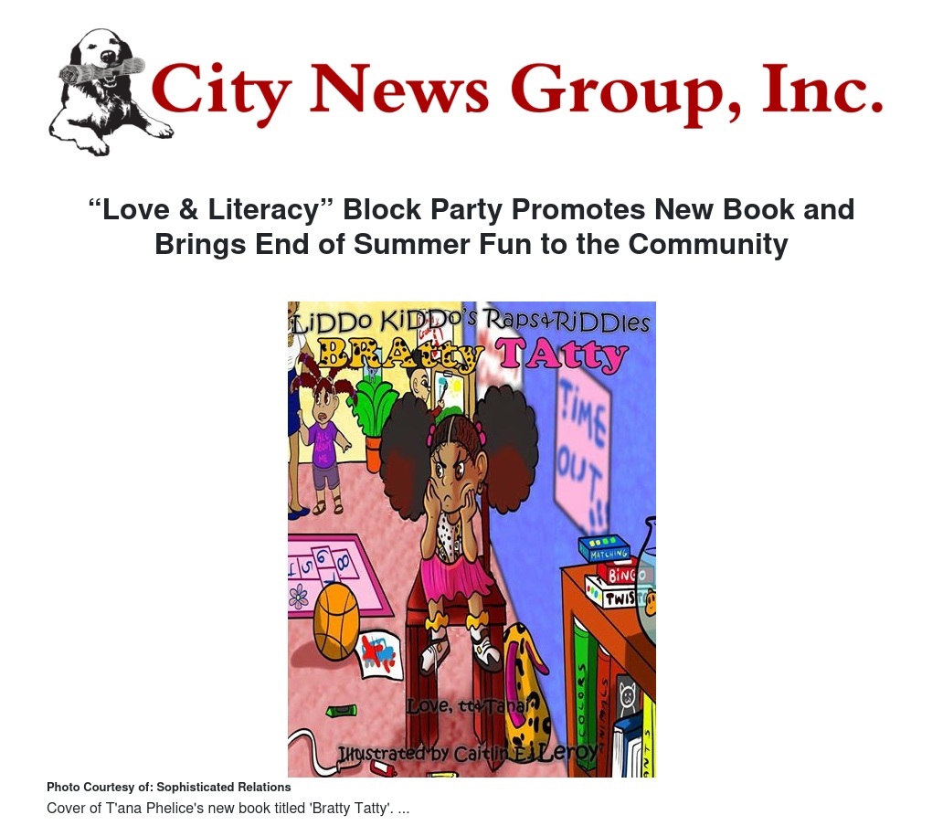 On Saturday, Sept. 20 at Littlefield/Shultis Park located at 2525 Kendall Way in San Bernardino, author and city native T’ana Phelice will be hosting ‘Love & Literacy Block Party’ to promote literacy in a fun and engaging way with the release of her newest book ‘Bratty Tatty’.