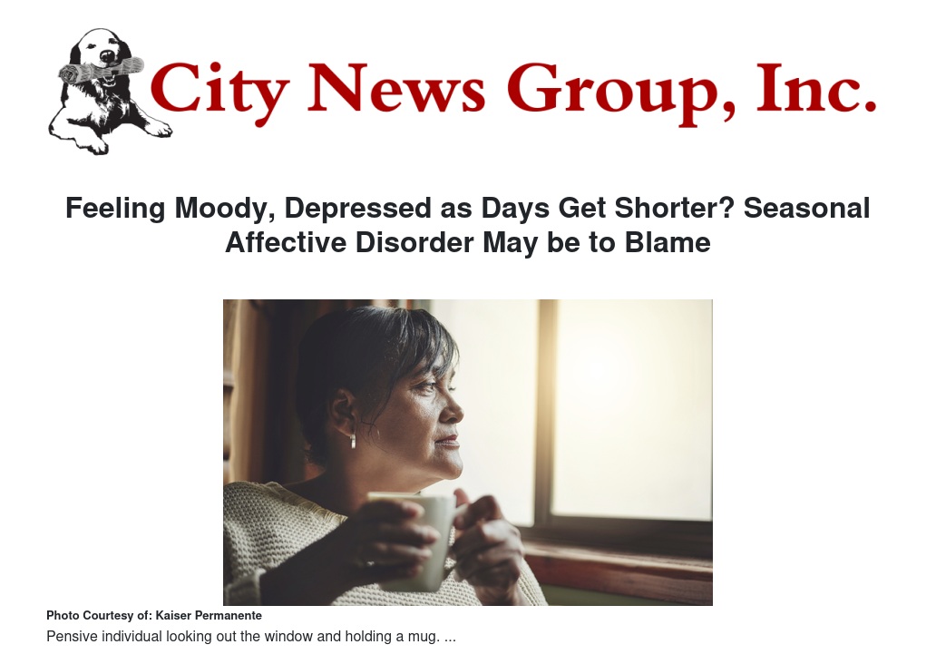 Feeling Moody, Depressed as Days Get Shorter? Seasonal Affective Disorder May be to Blame by Carol Soudah - City News Group, Inc.