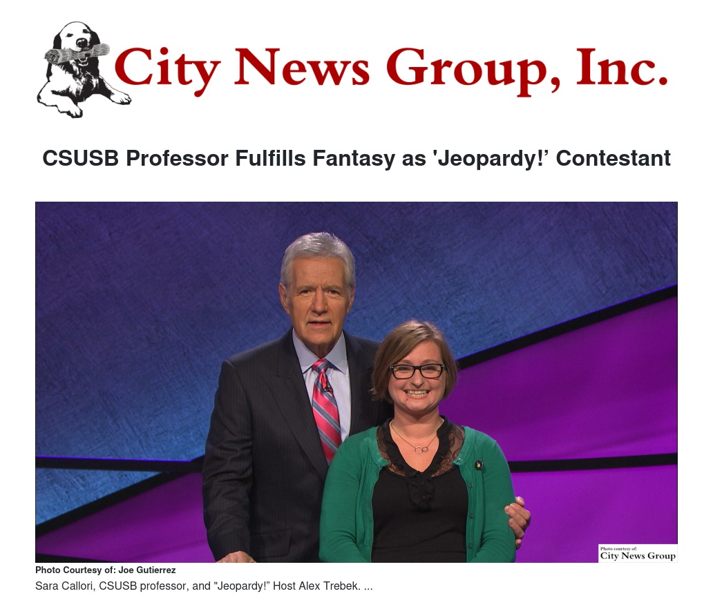 SAN BERNARDINO >> Sara Callori, the Cal State San Bernardino faculty member who recently fulfilled a childhood dream by becoming a contestant on legendary game show “Jeopardy!”?