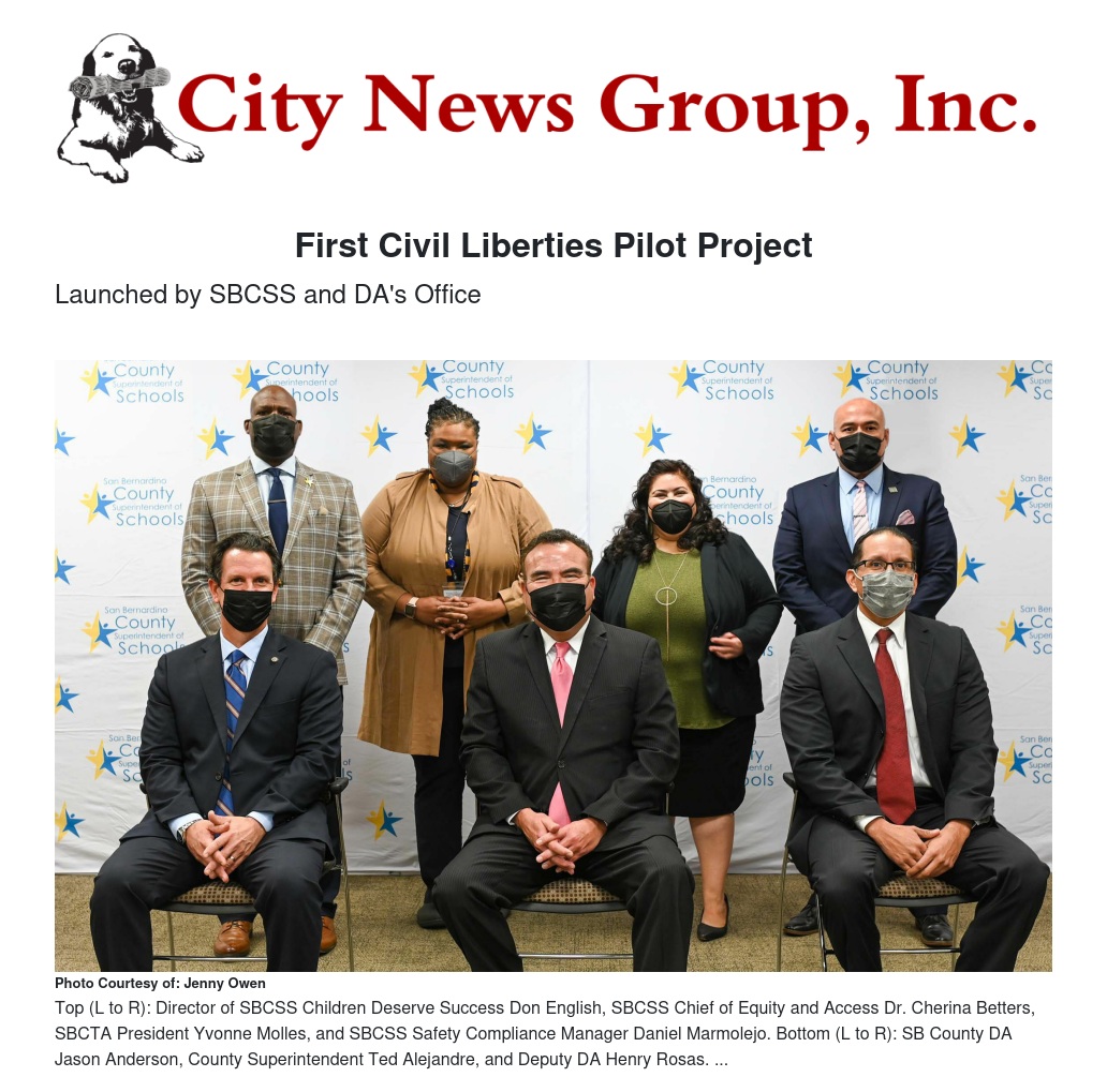 San Bernardino County Superintendent of Schools (SBCSS), in partnership with the San Bernardino County District Attorney’s Office, is launching a pilot project called “Civil Liberties: Know Your Rights.” The pilot consists of educational resources that will be offered to high school students at three County Schools sites.