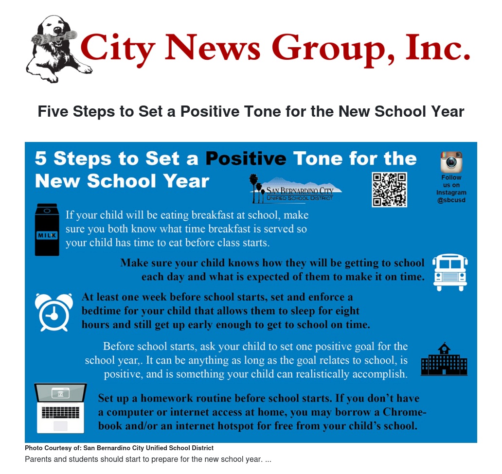 There are many things you may want to do so your child starts the school year off on the right foot, but some of it may be out of your control or simply not within your reach. But, there are several things you can do before classes start on Monday, August 6 to make sure your child has a positive school year in the San Bernardino City Unified School District (SBCUSD).
