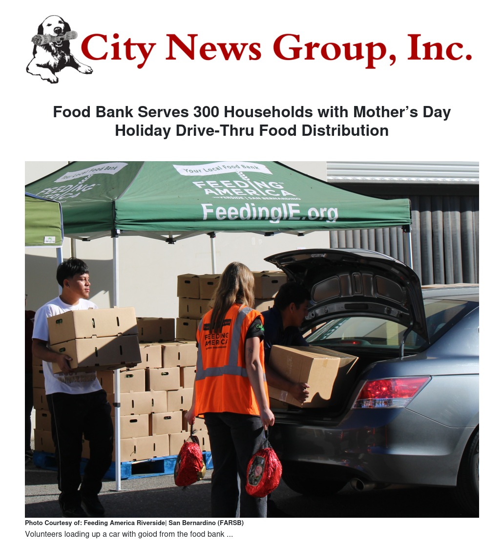 Food Bank Serves 300 Households with Mother’s Day Holiday Drive-Thru Food Distribution by Rachel Bonilla - City News Group, Inc.