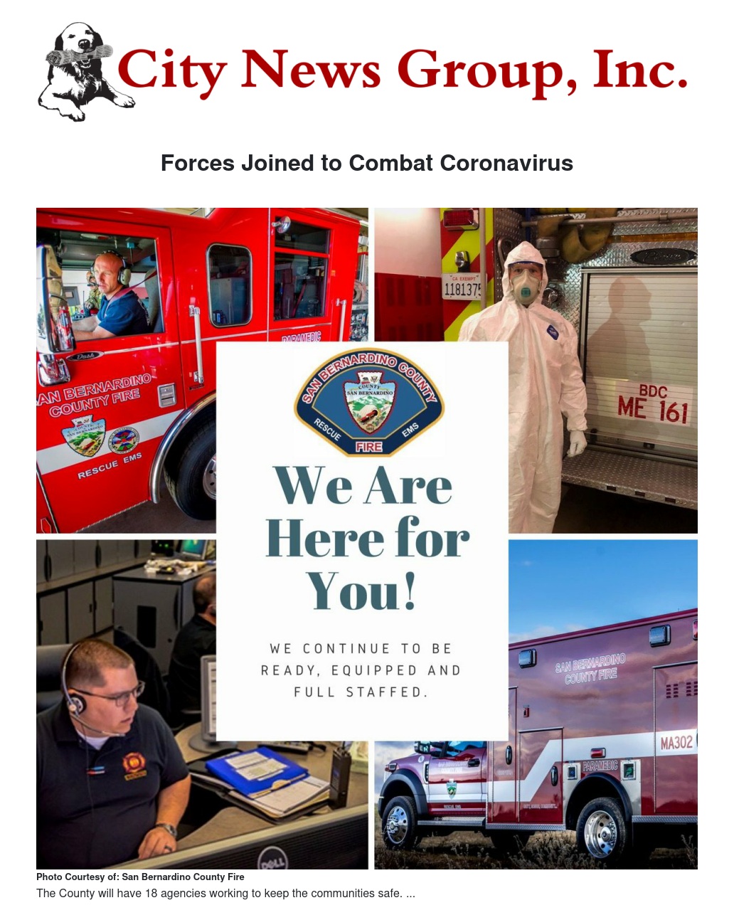 In their ongoing effort to best serve the public during the COVID-19 crisis, San Bernardino County fire agencies have joined forces. Strategies most commonly seen when battling large wildfires are being used to tackle this new threat.