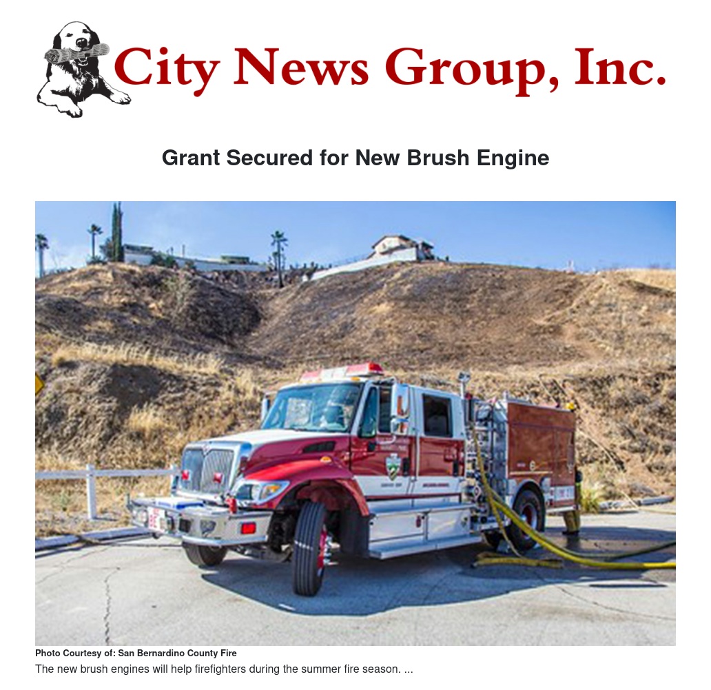 The San Bernardino County Fire Protection District has obtained a $500,000 grant for a new Type III Brush Engine. Upon the request of County Fire, Assemblymember Eloise Gómez Reyes of the 47th Assembly District petitioned Governor Jerry Brown’s office to include the funding for the engine in the 2018-19 budget. The money is part of a $10 million grant for local assistance from the Department of Forestry and Fire Protection.