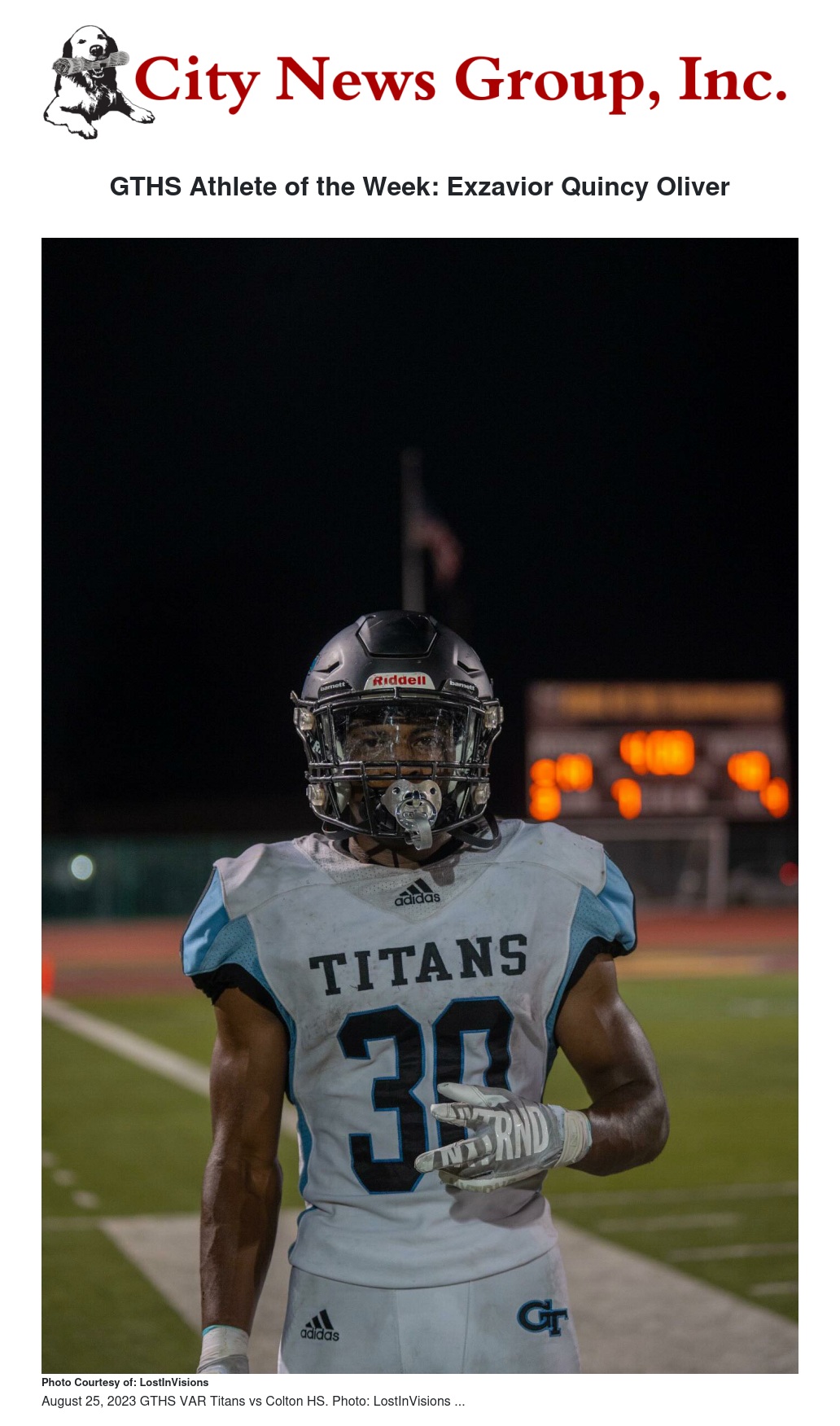 GTHS Athlete of the Week: Exzavior Quincy Oliver by Titan Mom Elvira - City News Group, Inc.