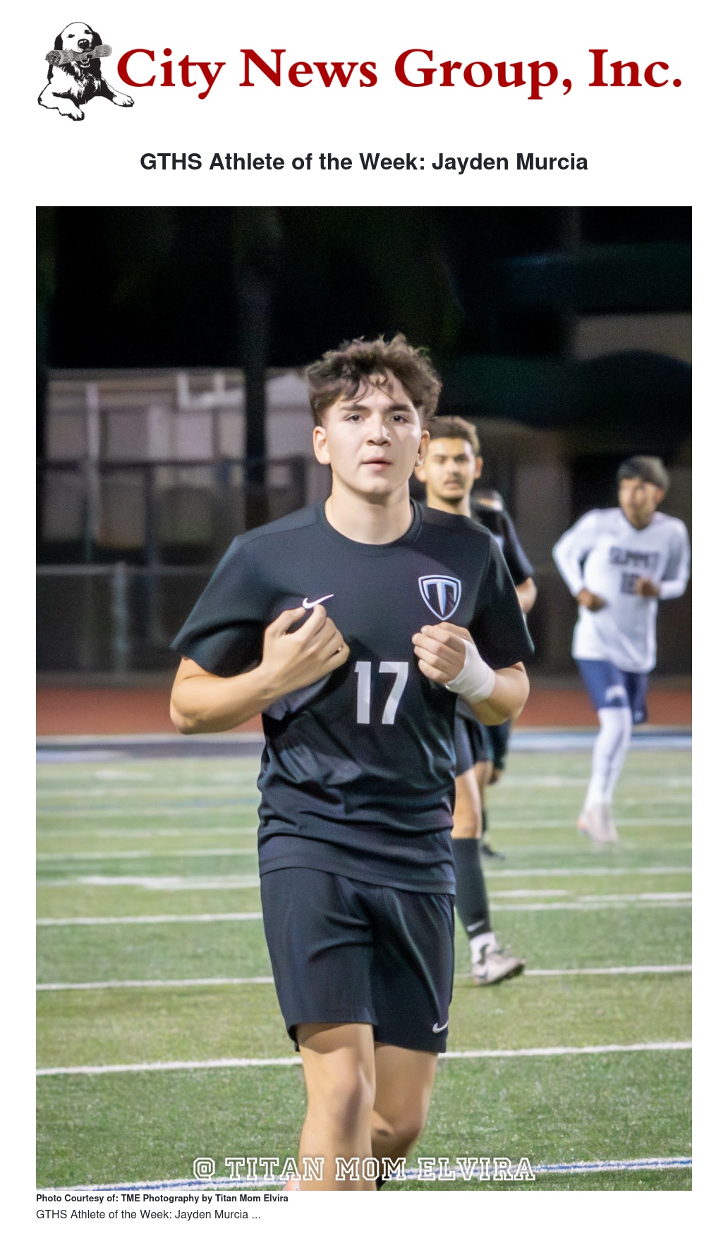 GTHS Athlete of the Week: Jayden Murcia by Titan Mom Elvira - City News Group, Inc.