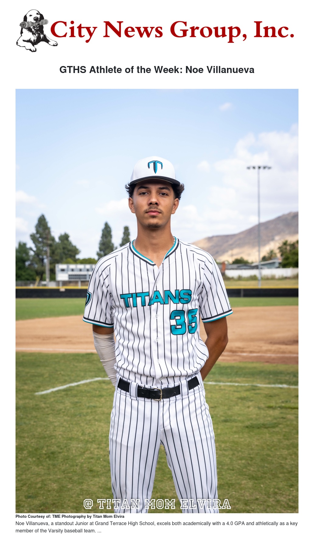 GTHS Athlete of the Week: Noe Villanueva by Titan Mom Elvira - City News Group, Inc.