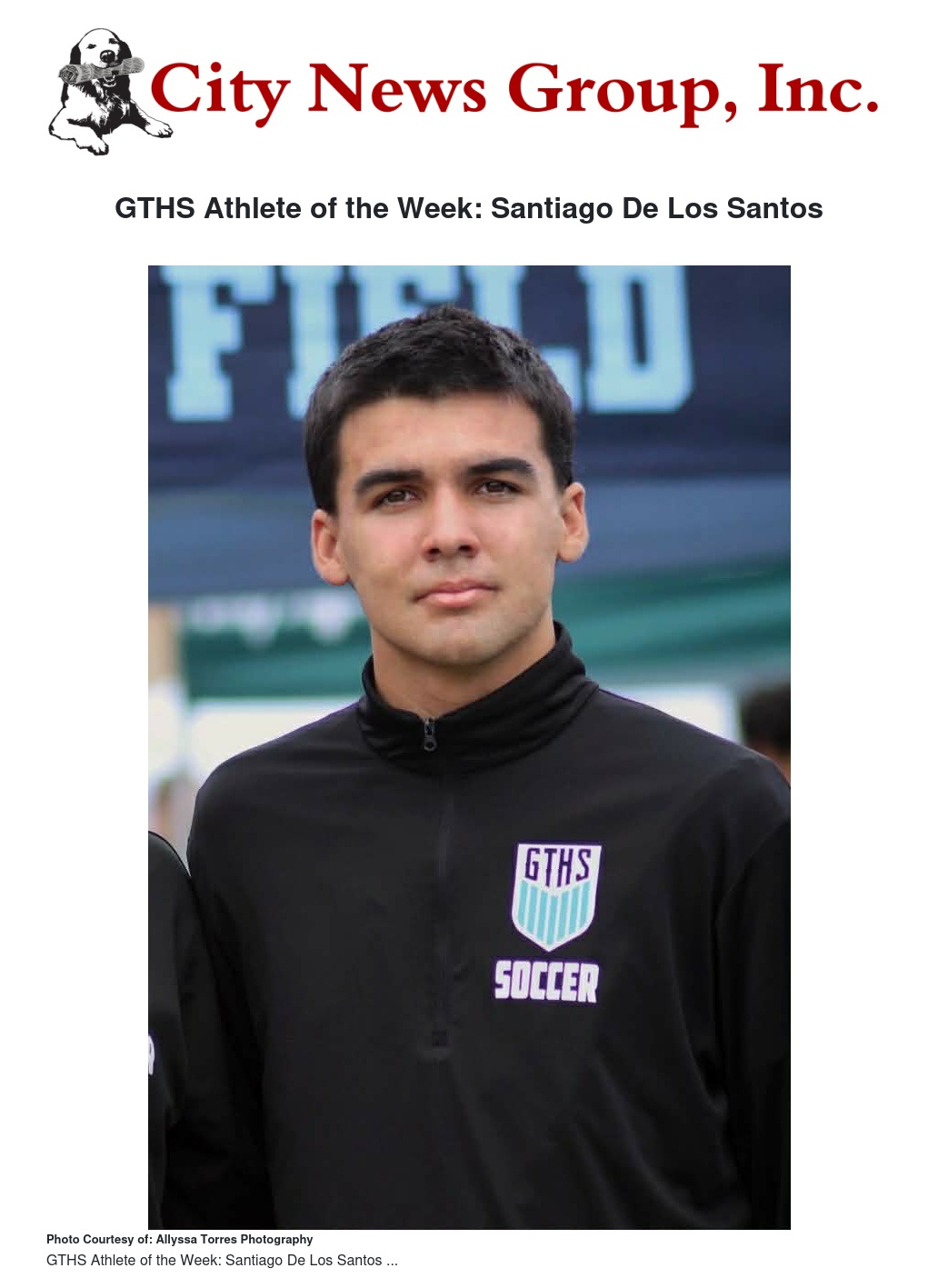 GTHS Athlete of the Week: Santiago De Los Santos by Titan Mom Elvira - City News Group, Inc.