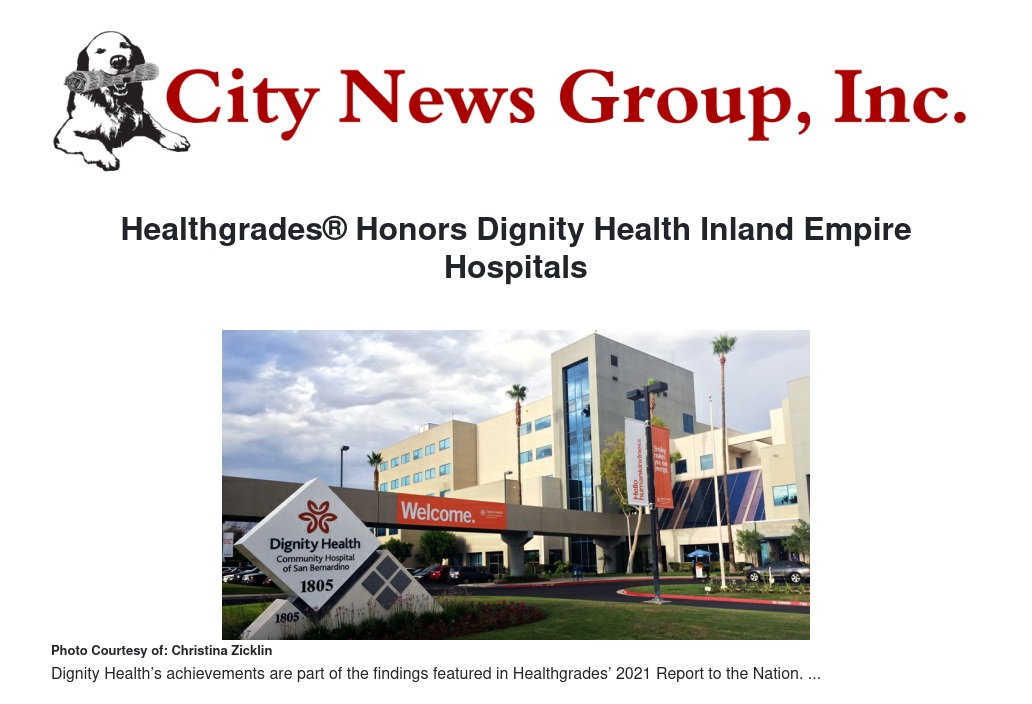 Healthgrades® Honors Dignity Health Inland Empire Hospitals by Christina Zicklin - City News Group, Inc.