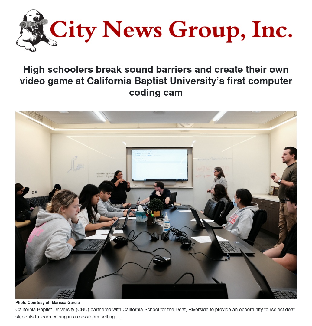 High schoolers break sound barriers and create their own video game at California Baptist University’s first computer coding cam by California Baptist University - City News Group, Inc.